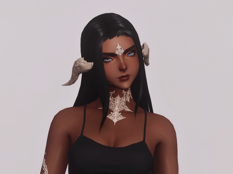 My characters are kept relatively vanilla; anything you see can be recreated in an unmodded game, unless I specify a mod is used. While I’m always keen to share, I’d prefer to keep my characters’ settings for myself.