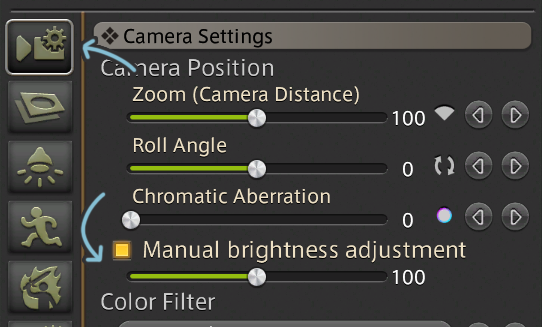 With that out of the way, let’s step into /Gpose and explore what it offers. First up is the Manual Brightness Adjustment slider. Think of this as your exposure control—it brightens or darkens the entire image.