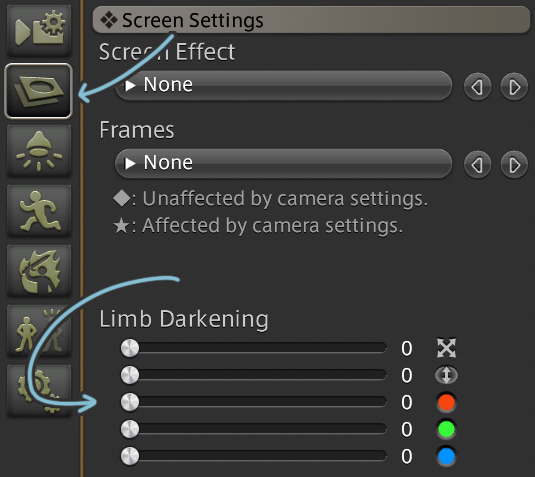 Limb Darkening is not a lighting setting, and I don’t necessarily recommend you use it as one. It simply adds a vignette around the edges of your screen, with adjustable intensity. I include it here because a subtle vignette can help darken or brighten a scene, though control is limited. Think of it as a “try it and see” option: if it works, great; if not, move on.