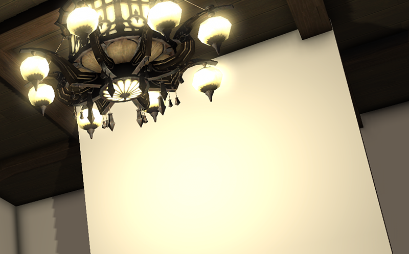 For lighting, try to choose something as neutral in colour as possible. In this case, I will be using the Riviera Chandelier (also purchasable with the Housing Merchant). While it still has a yellow tint, it is relatively neutral, and is one of the most accessible options available. I personally find yellow light easier to work with than other colours when it comes to white balancing.